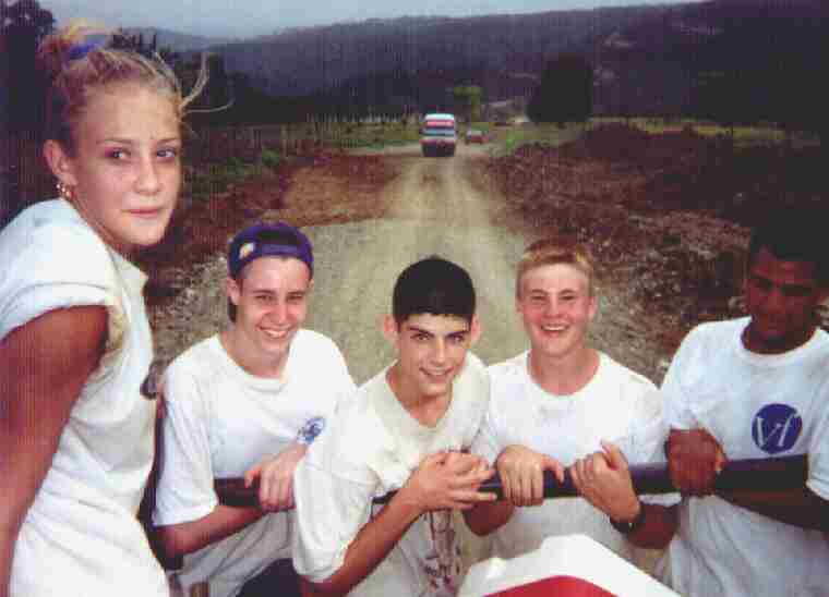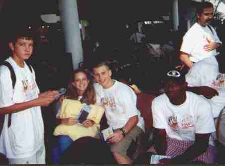 Left to right: Junior, Jen, and some little girl that was feeling left out. Junior is one of the coolest kids we met, and the first year ('98) he had a crush on Jen (that's why I took the pic), and hated me the whole time cuz I'd pretend like I was hitting on her.