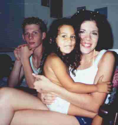 Another bad picture of my sister (right), a little girl my Mom babysits, and me. This picture is old.