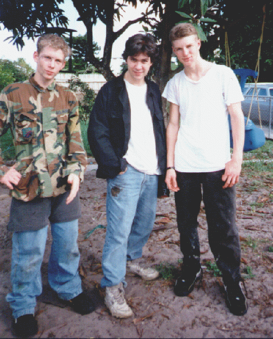 (BELOW) Me, my oldest brother, and my best friend all decked out and ready to go play paintball in a nearby field. I got a little too serious w/ my camouflage, Kelly was just having a fun time, and then there's Pat... always posing. (this was taken in early '98) |